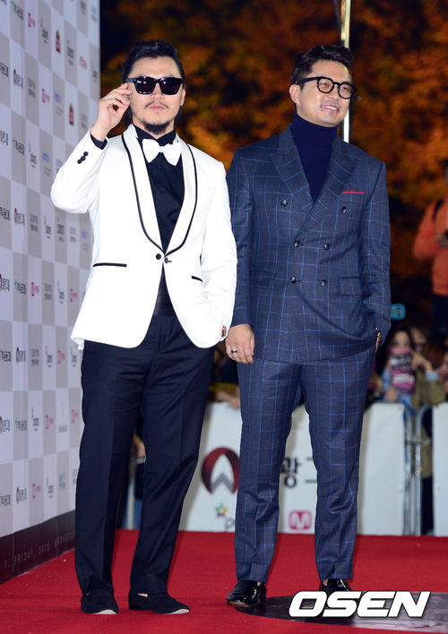 배우 양동근과 정준이 포토타임을 갖고 있다.