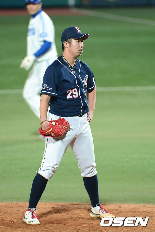 1일 오후 대구구장에서 열리는 '2013 한국야쿠르트 세븐 프로야구' 한국시리즈 7차전 삼성 라이온즈와 두산 베어스의 경기, 5회말 무사 1,2루 두산 유희관이 삼성 최형우에게 볼넷을 허용한 뒤 아쉬워하고 있다.