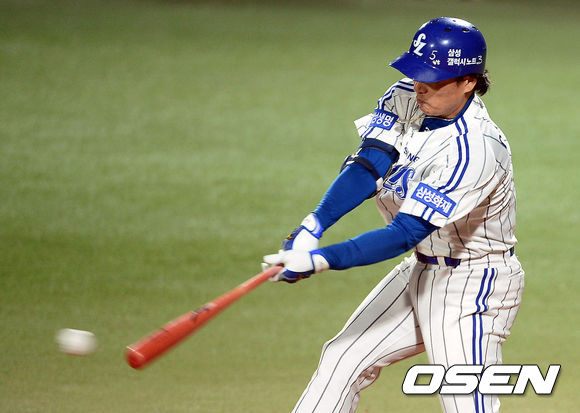 1일 오후 대구구장에서 열리는 '2013 한국야쿠르트 세븐 프로야구' 한국시리즈 7차전 삼성 라이온즈와 두산 베어스의 경기, 5회말 1사 만루 삼성 이승엽이 1타점 적시타를 때리고 있다.