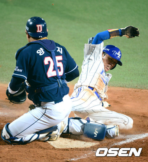 최형우의 타구가 아주 느리게 굴렀고, 두산 3루수 이원석을 앞으로 달려오며 공을 잡았다. 그러나 균형을 잃은 상태에서 송구 지점을 제대로 찾지 못했가. 그 사이 정병곤은 홈으로 슬라이딩하며 자연스럽게 오른팔을 들었다. 그런데 하필이면 이원석의 송구가 정병곤의 오른손을 맞고 포수 양의지 뒤쪽으로 빠지고 말았다.