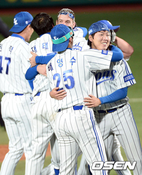 우승을 거둔 삼성 선수들이 기뻐하고 있다./spjj@osen.co.kr