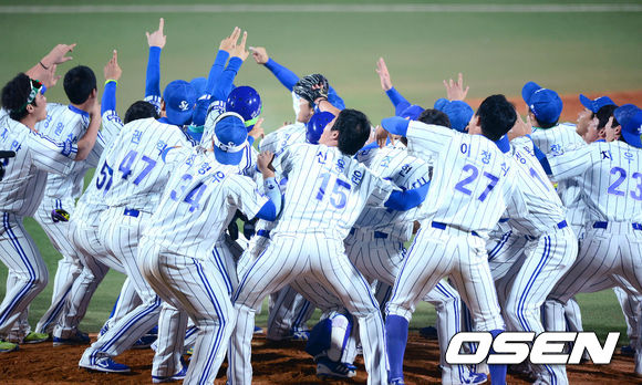 경기종료후 3년연속 통합우승을 이룬 삼성 선수들이 우승 세레모니를 하고 있다. / jpnews@osen.co.kr