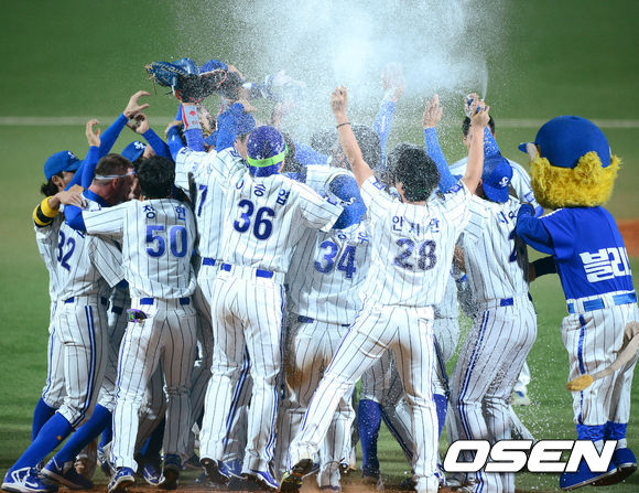 경기종료후 3년연속 통합우승을 이룬 삼성 선수들이 우승 세레모니를 하고 있다. / jpnews@osen.co.kr