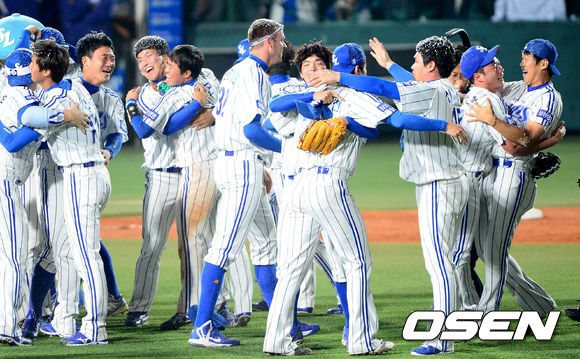 이로써 삼성은 먼저 3승(1패)를 내주고 남은 3경기를 모두 잡아내는 강력한 뒷심을 발휘하며 역전 우승을 차지했다. 지난 1985년 전후기 통합리그 우승을 포함해 역대 7번째 우승의 기쁨을 누렸다. 사상 첫 4위 우승을 노린 두산은 3승1패의 유리한 상황을 이용하지 못하고 내리 3연패 준우승에 그쳤다. / baik@osen.co.kr