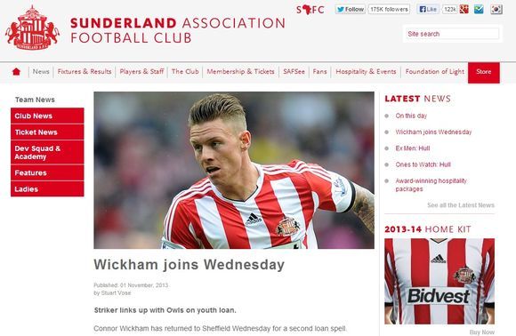선덜랜드는 1일(이하 한국시간) 공식 홈페이지를 통해 위컴이 내년 1월 1일까지 챔피언십(2부리그) 셰필드 웬즈데이로 단기 임대된다고 발표했다. 셰필드 웬즈데이로 임대된 위컴은 이번 주 주말 열리는 레딩과의 경기에 나설 예정이다.