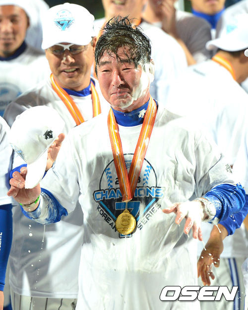 샴페인 범벅 류중일 감독,'이 정도 쯤이야'