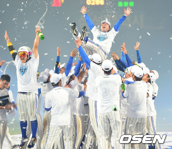 경기종료 후 류중일 감독이 헹가래를 받고 있다. 옆에서 뛰는 박석민이 인상적이다. / dreamer@osen.co.kr