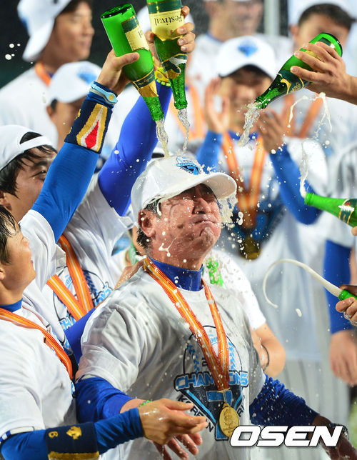 경기종료 후 삼성 류중일 감독이 샴페인 세례를 받고 있다./ dreamer@osen.co.kr