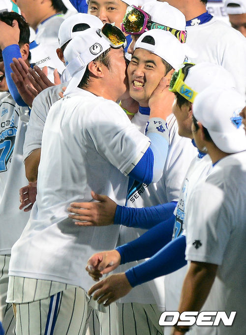 삼성 최형우와 장원삼이 우승을 기뻐하고 있다./jpnews@osen.co.kr