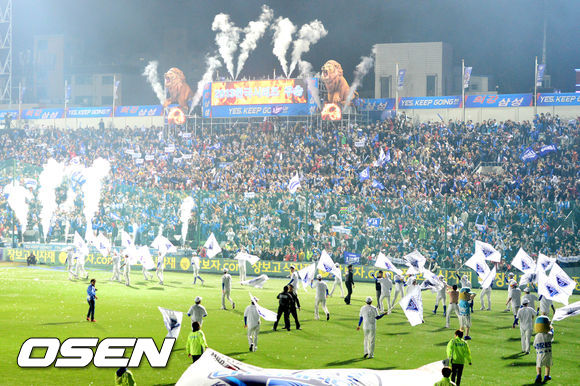 1일 오후 대구구장에서 열린 '2013 한국야쿠르트 세븐 프로야구' 한국시리즈 7차전 삼성 라이온즈와 두산 베어스의 경기 종료 후 삼성 선수들이 그라운드를 돌면서 팬들에게 인사를 하고 있다.