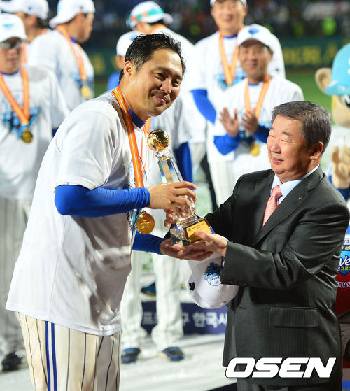 경기종료 후 MVP로 선정된 박한이가 KBO 구본능 총재에게 상패를 전달받고 있다./ dreamer@osen.co.kr