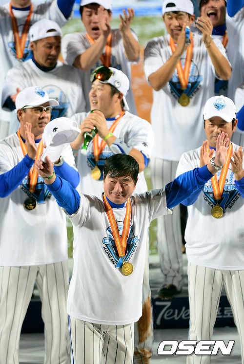 삼성 류중일 감독이 우승을 기뻐하고 있다./jpnews@osen.co.kr