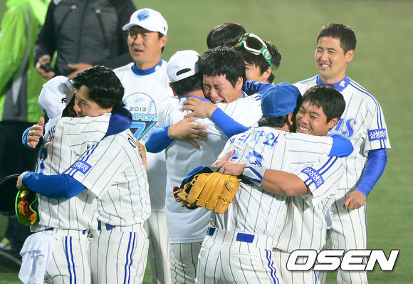 삼성 선수들이 서로를 껴안으며 우승을 기뻐하고 있다./jpnews@osen.co.kr