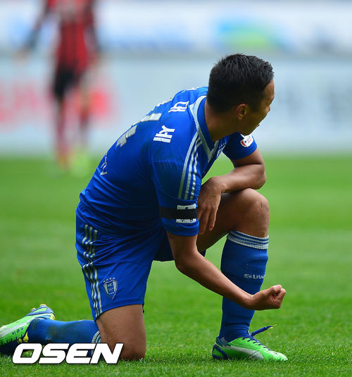 2일 오후 서울월드컵경기장에서 현대오일뱅크 K리그 클래식 2013 35라운드 FC서울과 수원 삼성 경기, 수원 정대세가 선제골에 성공한 후 세레모니를 펼치고 있다.
