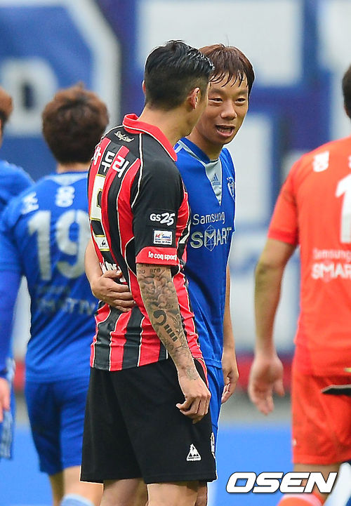 경기를 마치고 수원 염기훈이 서울 차두리와 포옹을 나누고 있다. / rumi@osen.co.kr