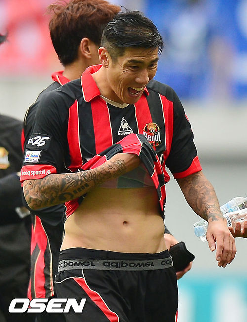경기를 마치고 서울 차두리가 유니폼을 올리고 있다. / rumi@osen.co.kr