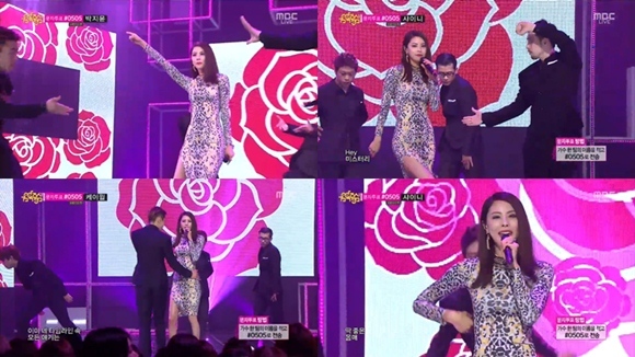 박지윤은 2일 오후 방송된 MBC 가요프로그램 '쇼! 음악중심'에 출연해 미스터리(Mr.Lee)'를 열창했다.