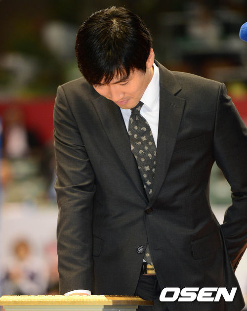 삼성화재 석진욱이 핸드프린팅을 하고 있다.