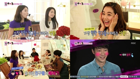 2일 오후 방송된 MBC 예능프로그램 '우리 결혼했어요 시즌4'(이하 우결)에서는 이소연의 절친한 친구인 배우 배수빈과 오윤아, 그리고 박하선이 브라이덜 샤워를 열어주는 모습이 그려졌다.