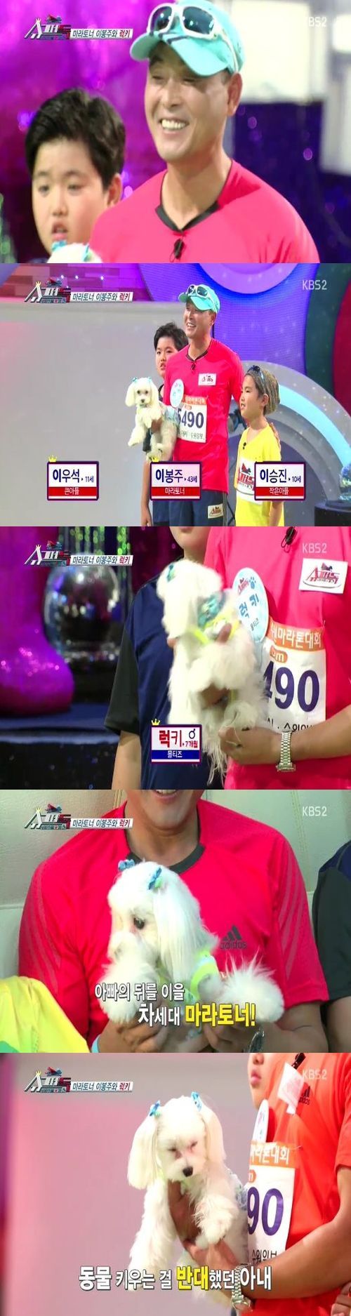 이봉주는 2일 방송된 KBS 2TV '슈퍼독'에 두 아들과 애완견 럭키를 데리고 모습을 드러냈다.