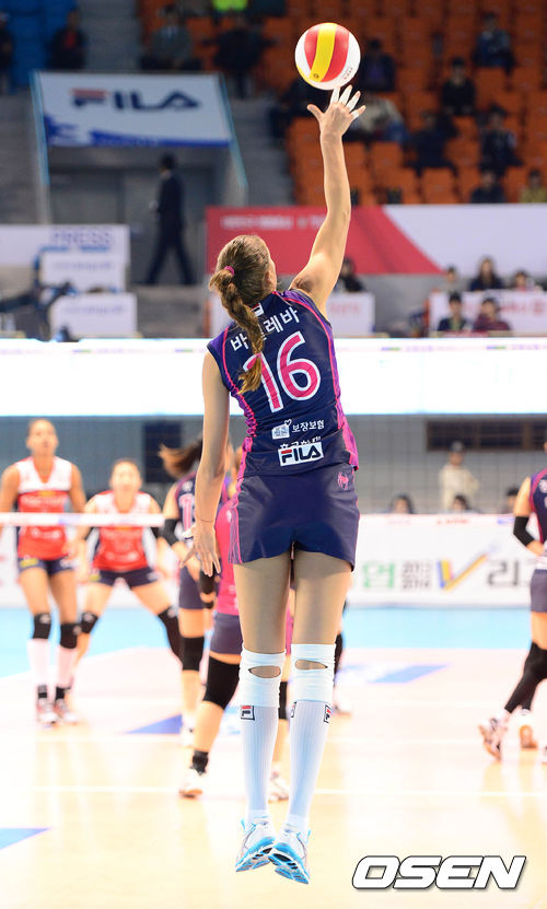 1세트 흥국생명이 바실레바가 서브를 하고 있다.