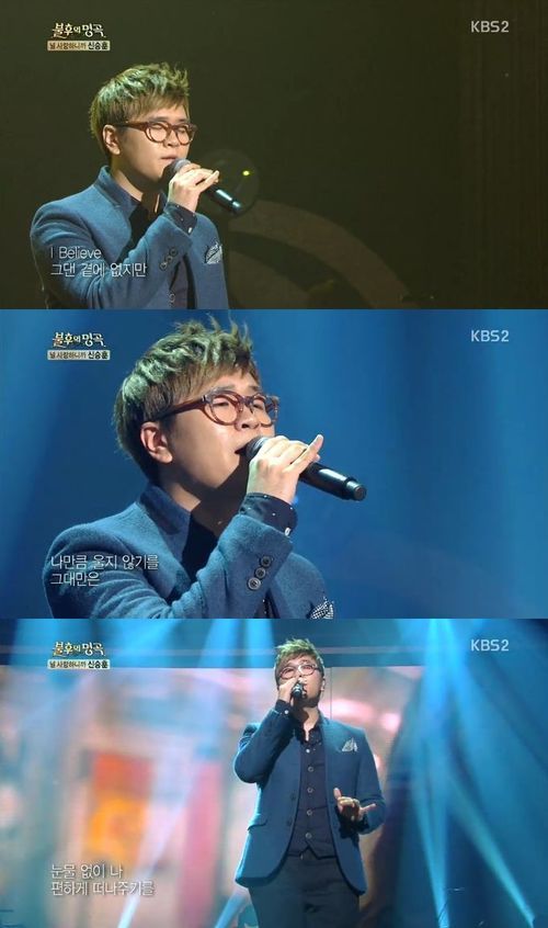 신용재는 2일 KBS 2TV 예능프로그램 '불후의 명곡-전설을 노래하다'(이하 '불후의 명곡')에서 영화 '엽기적인 그녀'의 OST이자 신승훈의 유명곡 '아이 빌리브(I Believe)'를 열창했다.