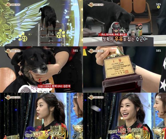 이날 방송에서는 천재견 수근이가 출연, 보는 이들을 감탄케 했다. 수근이는 장애물을 수월하게 통과하는가 하면 주인이 가리키는 물건을 정확하게 가져오는 놀라운 모습을 보였다.
