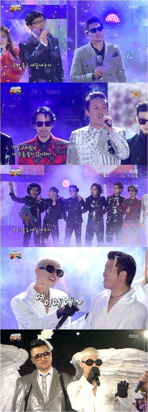 두 번째에 무대에 오른 정형돈과 지드래곤은 ‘형용돈죵’이라는 이름으로 세련된 힙합 비트와 재기발랄한 가사가 돋보이는 ‘해볼라고’를 열창했다. 시작은 가스펠 느낌이었다. 이후 시작된 신나는 힙합 무대는 인상적이었다. ‘호호호’, ‘홍홍홍’ 등 반복되는 추임새는 흥이 넘쳤다. 이들의 귀여운 안무와 보는 사람들로 하여금 어깨를 들썩이게 하는 신나는 음악은 중독성이 넘쳤다. 여기에 데프콘이 깜짝 등장해 날개를 달고 추임새를 더해 시선을 끌었다.