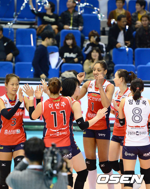 KGC인삼공사가 2일 대전충무체육관에서 열린 NH농협 2013-2014시즌 V리그 여자부 개막전 흥국생명과 경기에서 세트 스코어 3-1(25-21, 25-19, 22-25, 25-23)로 완승을 거뒀다. 지난 시즌 5승 25패로 승점 15점에 그치며 단독 꼴찌에 머무른 KGC인삼공사는 이날 승리로 첫 승을 따내며 기분 좋게 시즌을 시작하게 됐다.