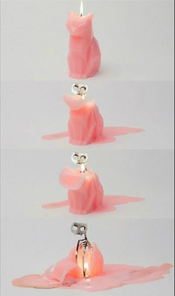 흥미로운 것은 이 '뼈만 남는 촛불' 사진 마지막이다. 초가 타들어가면서 해골 모양의 뼈대가 조금씩 드러나기 시작, 결국 고양이 모양의 초는 시간이 흘러 앙상한 뼈를 드러냈다.