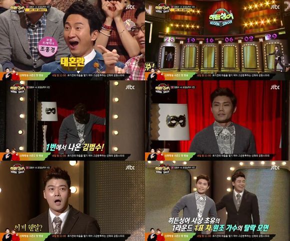 김범수는 2일 오후 방송된 JTBC '히든싱어2' 1라운드에서 28표를 받아 29표를 받고 탈락한 모창능력자와 단 한 표 차이를 기록했다.