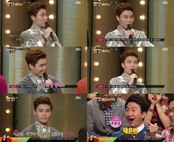 이에 김범수는 "내 연애사는 심플하다. 내 첫사랑이 지금 내게 끝사랑이다. 이야기하기 조심스럽지만 음악인이라면 자신의 아픈 기억을 끄집어 내야만 또 음악을 할 수 있지 않나"라고 말했다.