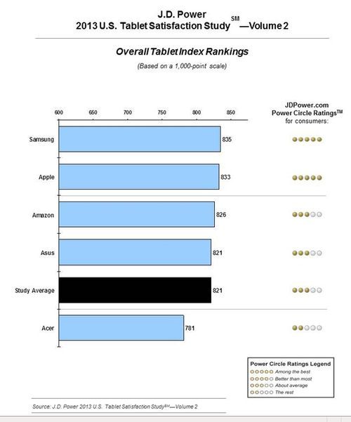 3일(한국시간) 해외 언론들의 보도에 따르면 미국 JD파워의 태블릿 만족도 조사에서 삼성전자가 애플을 누르고 1위를 차지했다.