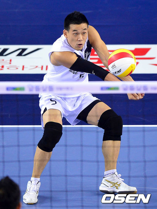 1세트 현대캐피탈 여오현이 리시브를 하고 있다.