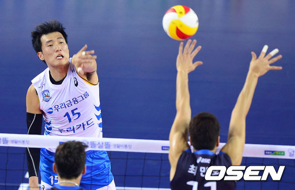 2세트 우리카드 김정환이 현대캐피탈의 블로킹을 피해 공격을 시도하고 있다./sunday@osen.co.kr