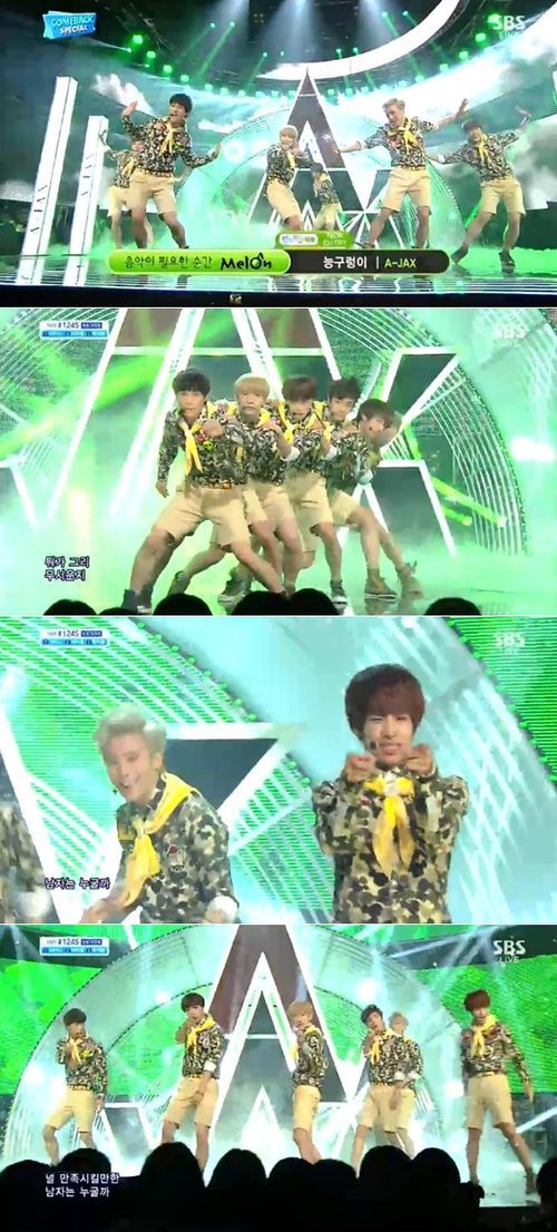 에이젝스는 3일 오후 방송된 SBS '인기가요'에서 '능구렁이'로 컴백 무대를 꾸몄다. 전치 6주의 부상을 당한 성민은 이날 무대에 함께하지 못했다.