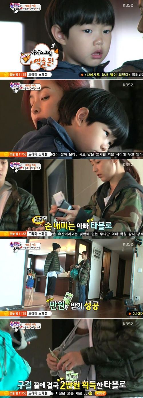 촬영으로 48시간동안 집을 비우게 된 강혜정은 딸 하루에게 용돈을 챙겨주며 포옹해주며, 감동스러운 장면을 연출했다. 이때 곁에 있던 타블로가 불쑥 "나도 용돈을 달라"는 말을 꺼낸 것.
