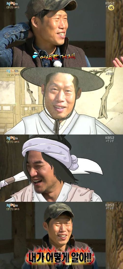 이수근은 3일 오후 방송된 KBS 2TV ‘해피선데이-1박 2일’(이하 ‘1박2일’)에서 멤버들과 경북 청송에서 신분상승 레이스를 펼쳤다. 이 때 레이스 룰의 설명을 듣던 이수근이 유해진을 향해 “아무리 노력해도 양반이 될 수 없는 얼굴이 있다”는 딴지를 건 것.