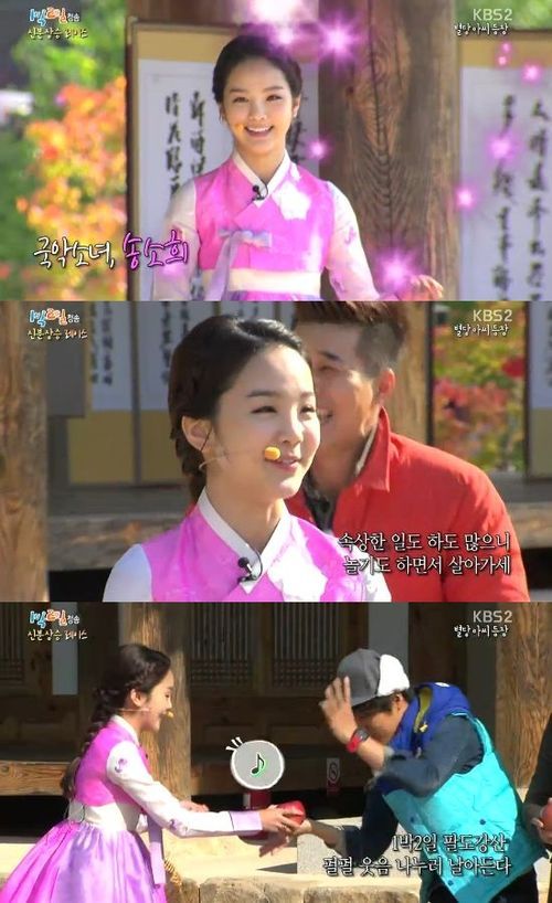 국악소녀 송소희가 KBS 2TV ‘해피선데이-1박 2일’(이하 ‘1박2일’)에 깜짝 출연했다.