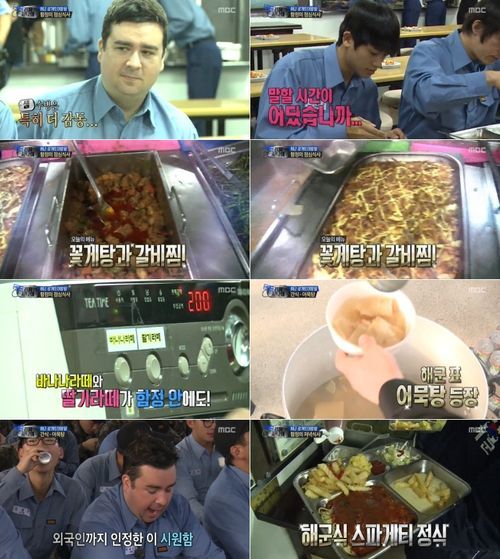 군요리 전문가 류수영은 갈비찜을 먹은 후 “고춧가루를 정말 좋은 걸 썼다. 비린내가 하나도 안 난다”며 흡족해했다. 서경석 역시 “진짜 맛있다. 해군이 확실히 밥이 맛있는 것 같다”며 평했다. 손진영은 “군에서 꽃게탕을 먹는다는 게 정말 신기하다”며 대원들과 이야기를 나눴고, 장혁과 박형식은 조용히 식판을 들고 배를 채웠다.
