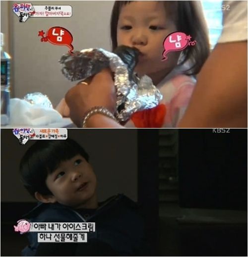 3일 본격 정규 방송을 시작한 KBS 2TV 예능프로그램 '해피선데이-슈퍼맨이 돌아왔다'에서 귀여운 어린이, 아가들이 등장한 가운데 추성훈-추사랑 부녀, 그리고 이날 처음으로 출연한 타블로-하루 부녀가 눈길을 끌었다.