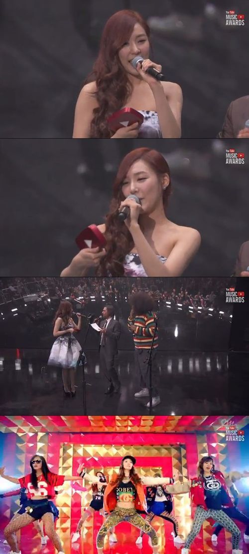 이날 자리한 티파니는 시상식 무대에 오르며 연신 "오마이갓"을 연발했다. 티파니는 유창한 영어 실력으로 "정말 감사하다. 유튜브는 나의 좋은 친구다. 정말 믿기지 않는다"고 소감을 밝혔다.