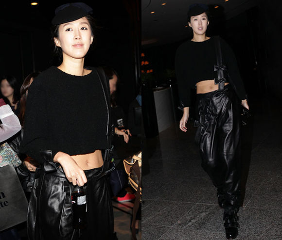 공개된 사진은 지난 '쟈뎅 드 슈에뜨' 행사장에서 홍진경의 사진으로 블랙의 크롭톱에 가죽멜빵바지를 매치하였으며, 리본이 돋보이는 모자를 포인트로 가미하여 남다른 패션센스를 자랑하고 있다.