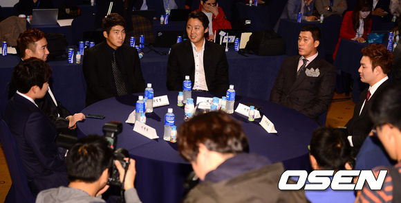 4일 오후 서울 삼성동 그랜드 인터컨티넨탈 서울 파르나스에서 열린 '2013 한국야쿠르트 세븐 프로야구' 정규 시즌 MVP 및 부문별 시상식에서 MVP, 신인상 후보 선수들이 한 자리에 앉아 시상식을 기다리고 있다.