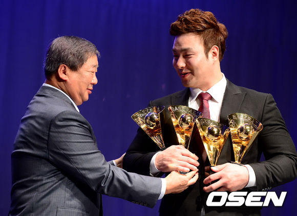 한국야구위원회(KBO)는 이날 '2013 한국야쿠르트 세븐 프로야구' 정규리그 시상식을 개최했다. 타격, 다승 등 1군 및 퓨처스리그(2군) 부문별 타이틀홀더에게 시상을 하는 가운데 역시 가장 관심을 모으는 부분은 MVP다.