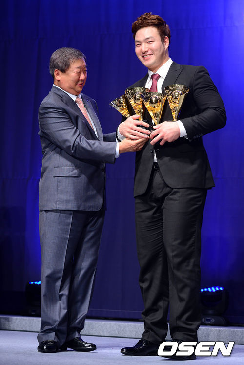 한국야구위원회(KBO)는 이날 '2013 한국야쿠르트 세븐 프로야구' 정규리그 시상식을 개최했다. 타격, 다승 등 1군 및 퓨처스리그(2군) 부문별 타이틀홀더에게 시상을 하는 가운데 역시 가장 관심을 모으는 부분은 MVP다.
