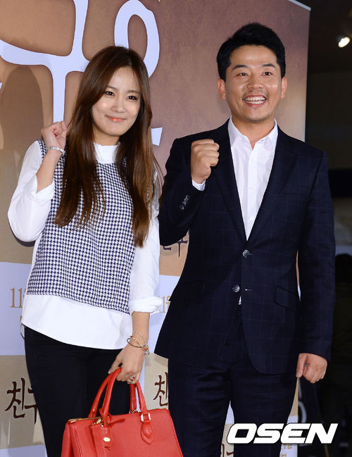 4일 오후 서울 건대 롯데시네마에서 진행된 영화 '친구2'(곽경택 감독) VIP시사회에서 김지민 김준호가 포토타임을 갖고 있다.