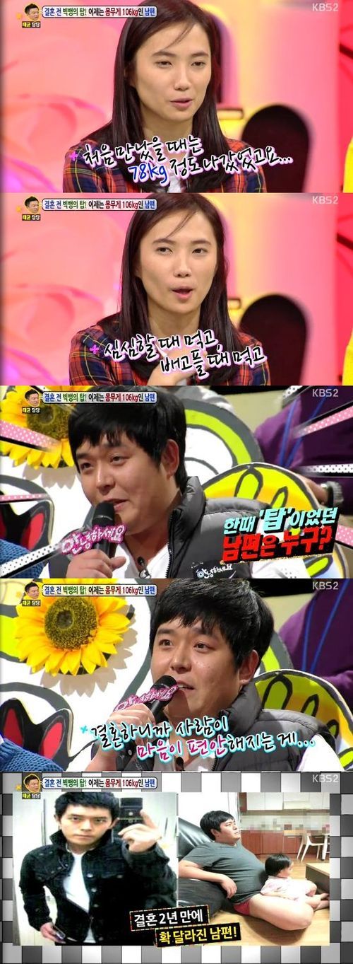 이에 대해 남편은 "결혼을 하니 마음이 편해졌다"면서 "아내가 귀엽다고 해주니 저도 이해해주겠거니하고 먹었다"며 비만의 이유를 설명했다.