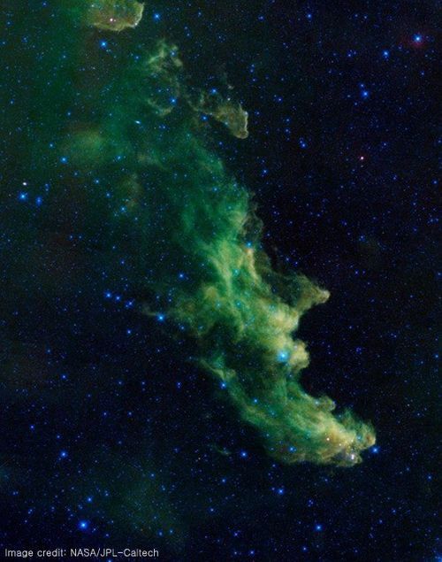 이 마녀 머리 성운은 지구처럼 푸른 색을 띠는 것 같지만 먼지 입자가 적색보다 푸른색을 더 많이 반사하기 때문이다. 촬영은 지난 2009년 발사한 지름 40cm짜리 적외선 망원경을 탑재한 광역적외선탐사위성(WISE)에 의해서다.