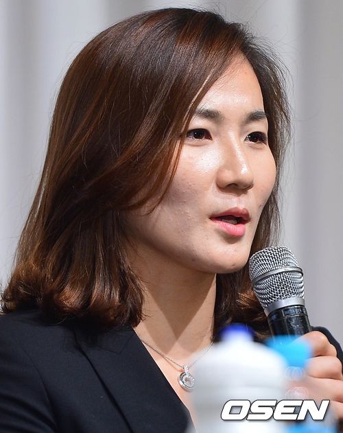 5일 오전 서울 청담동 리베라호텔에서 '우리은행 2013-2014 여자프로농구 미디어데이'가 열렸다. KDB생명 신정자가 인사말을 하고있다.